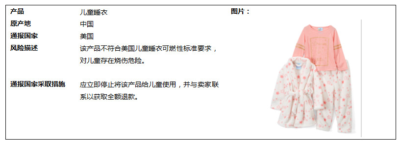 2020年5月,歐盟、美國、加拿大和澳洲共發(fā)生7例紡織及服裝產(chǎn)品召回案例,其中產(chǎn)自中國的有1例。召回信息統(tǒng)計及典型召回案例歸納如下: