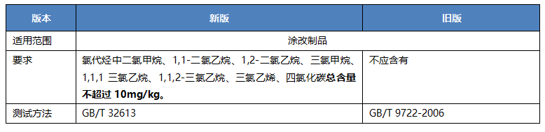 • 將涂改制品中“有機溶劑苯”改為“苯”,修訂涂改制品中氯代烴要求: