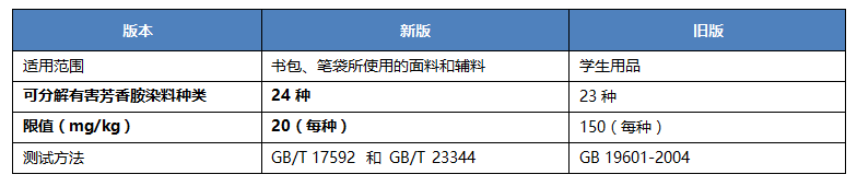 • 修訂可分解有害芳香胺染料的適用范圍和限值,增加了其種類,如下: