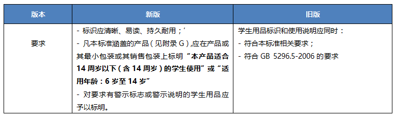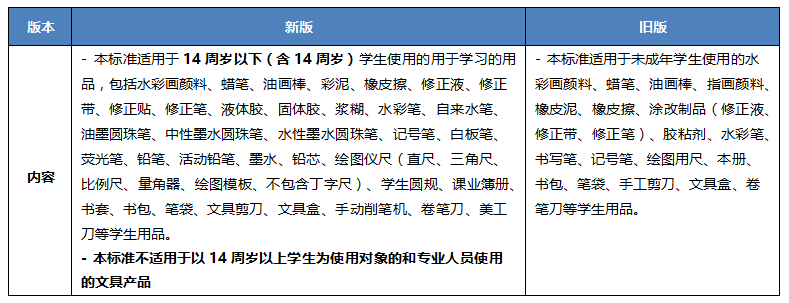 • 修訂適用范圍及部分學(xué)生用品名稱,增加對學(xué)生年齡段的表達和不適用范圍,詳見下表:
