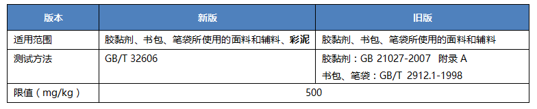 • 增加了彩泥中游離甲醛的限量和測試方法: